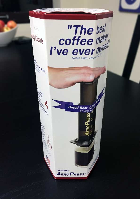 It is well known in the tech world that to be successful, you need a fussy way to make coffee. A couple years ago, after seeing some great recommendations, I thought I might finally try the legendary AeroPress. Next time I was down at our local fancy coffee shop, waiting for a fancy coffee, I took a look on their fancy shelves, and found the box. It was not what I expected.