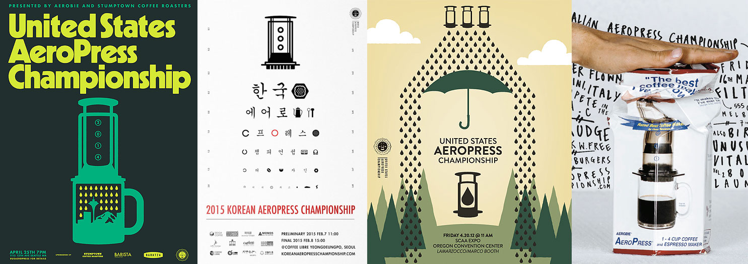 One might argue that crafting an attractive design to promote a plastic plunger tube is an insurmountable task. Look no further than the AeroPress World Championship for proof that it can be done well. In recent years, the competition has inspired an array of excellent AeroPress-themed graphic designs.