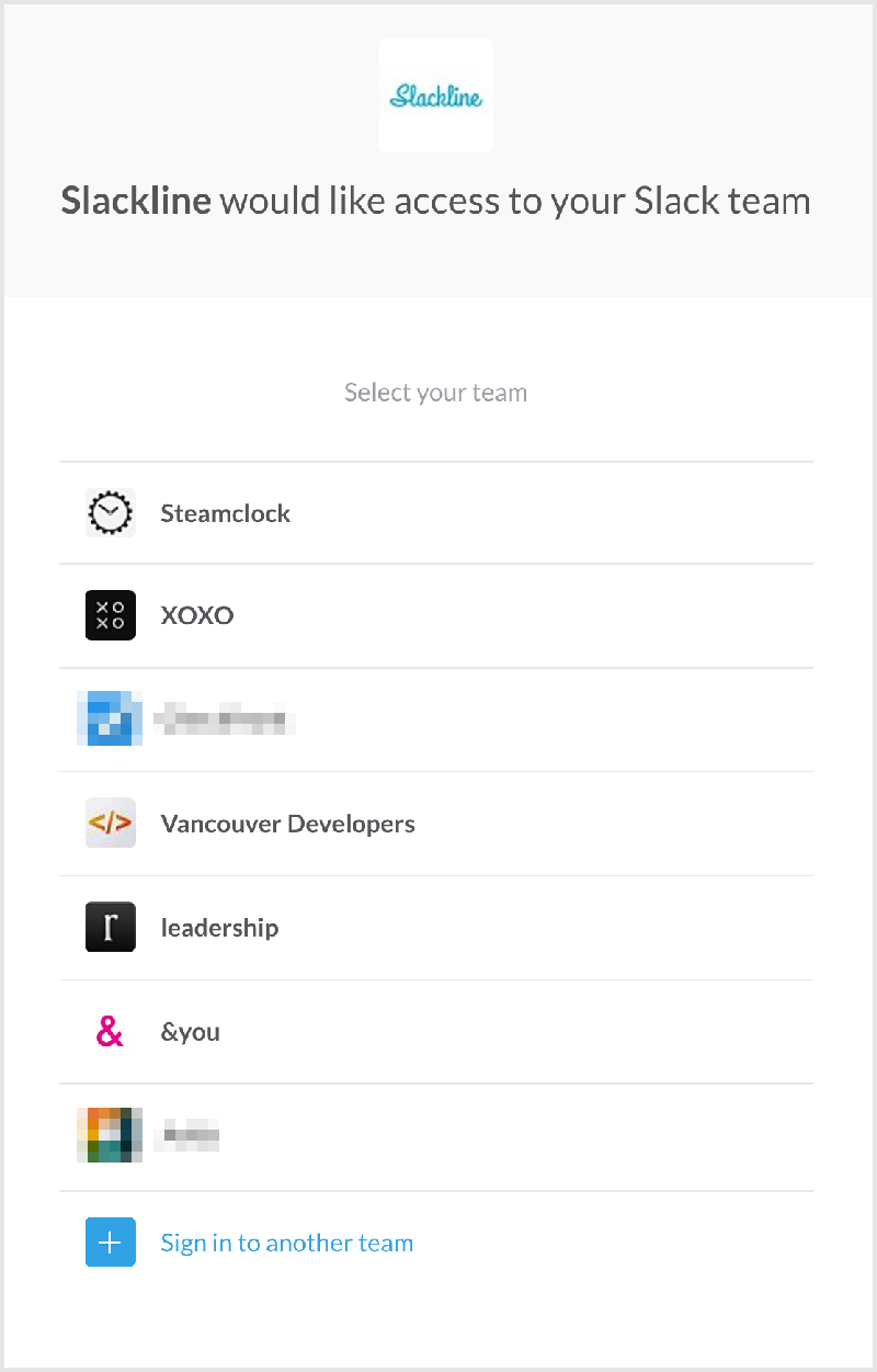 The other ray of light comes from our new friend, “Sign in with Slack.” While testing out the feature on the shared channel tool Slackline, I was pleasantly surprised to see a team chooser. This is, as far as I know, the first product feature Slack has launched that shows centralized access to your teams. While it’s disconcerting that I may one day may need this to figure out which of my many Slack teams I associated with some web service, it’s great to see acknowledgement from Slack, not just in their support tweets but in their product, that this is a real problem they need to solve.